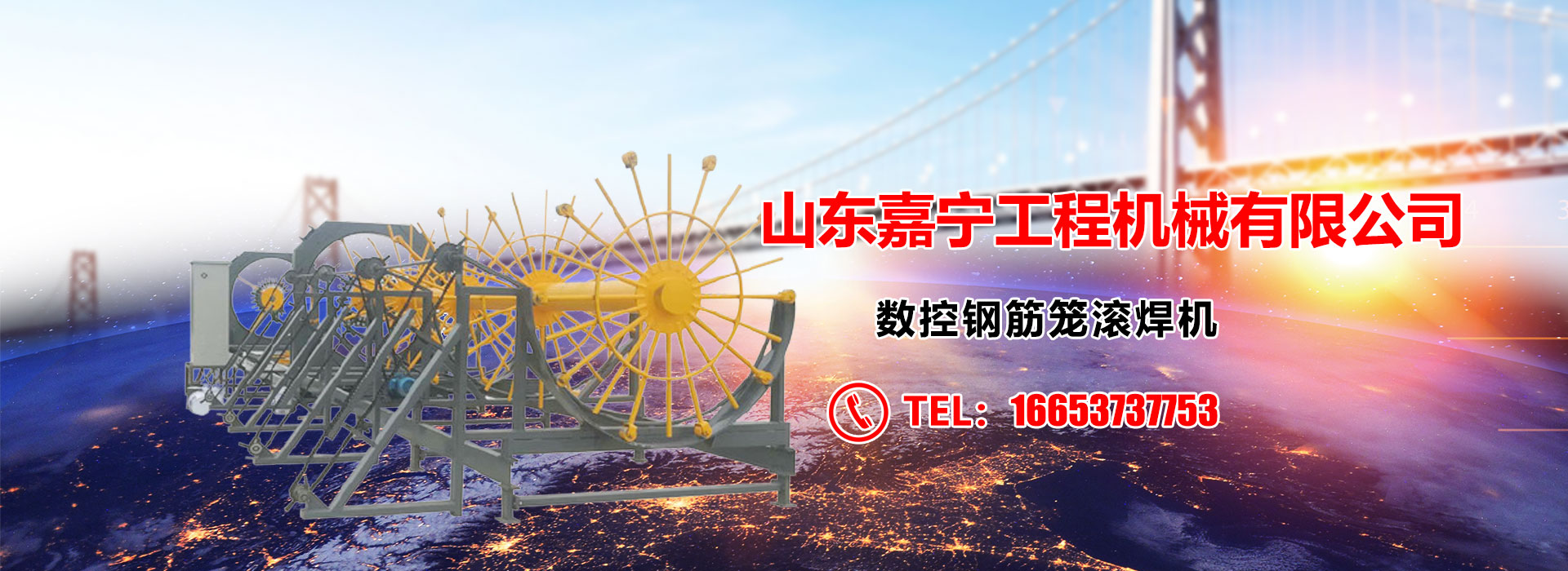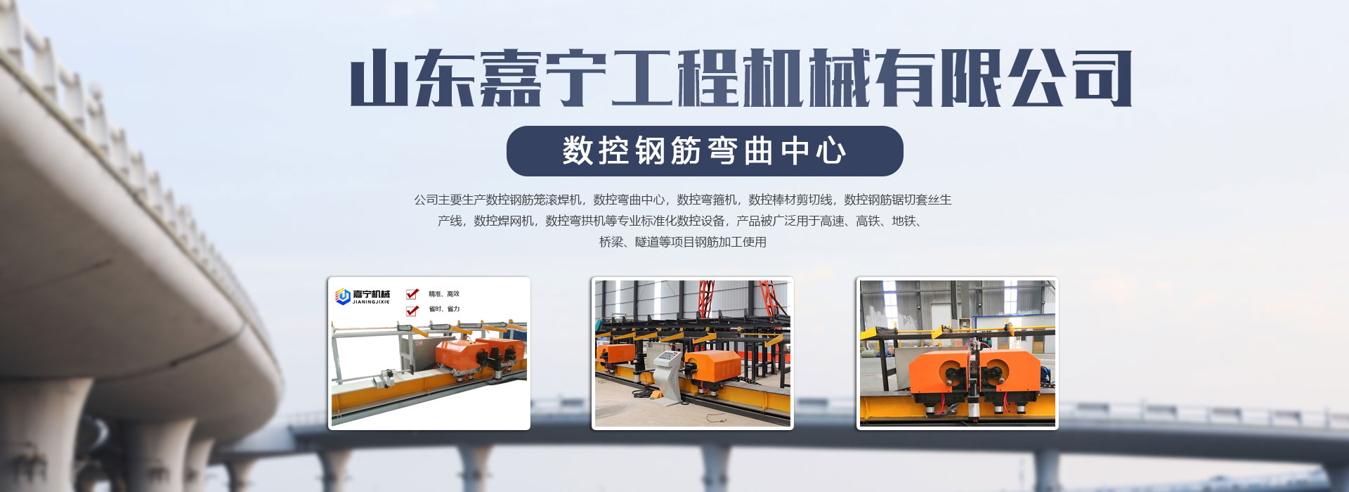 山东嘉宁机械设备有限公司是数控钢筋笼滚焊机(加重型), 数控钢筋弯曲中心,数控钢筋锯切套丝生产线,数控钢筋笼绕筋机,数控钢筋弯箍机 数控钢筋剪切生产线 ,智能压浆台车,智能张拉设备,数控焊接机器人,数控等离子切割机 ,数控钢筋锯床, 数控调直切断机,钢筋切断机,钢筋直螺纹套丝机 , 数控弯曲机, 钢筋弯弧机, 数控焊圆机, 冷弯机(数控弯拱机),小导管冲孔机,小导管成型机,冲剪机,数控焊网机 ,八字筋成型机,液压闸式剪板机 ,钢筋弯箍机,镦粗机,气保焊机350型,打磨机,液压冲孔机研发、生产、销售于一体的高技术企业。坐落于有着中国知名工程机械制造基地之一美誉的山东济宁,也是山东省鲁南城市带中心城市!
